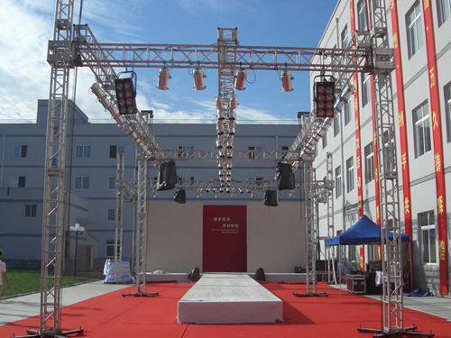 中型舞台灯架: 300mm*300mm / 300mm*400mm最大跨度15米高7米仅限口字型,龙门型高度不能超过6米仅限室内。